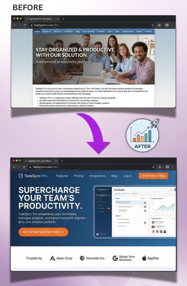 Our AI-assisted process analyzes your current website and redesigns it using modern design principles, improved content structure, and conversion-focused layouts.